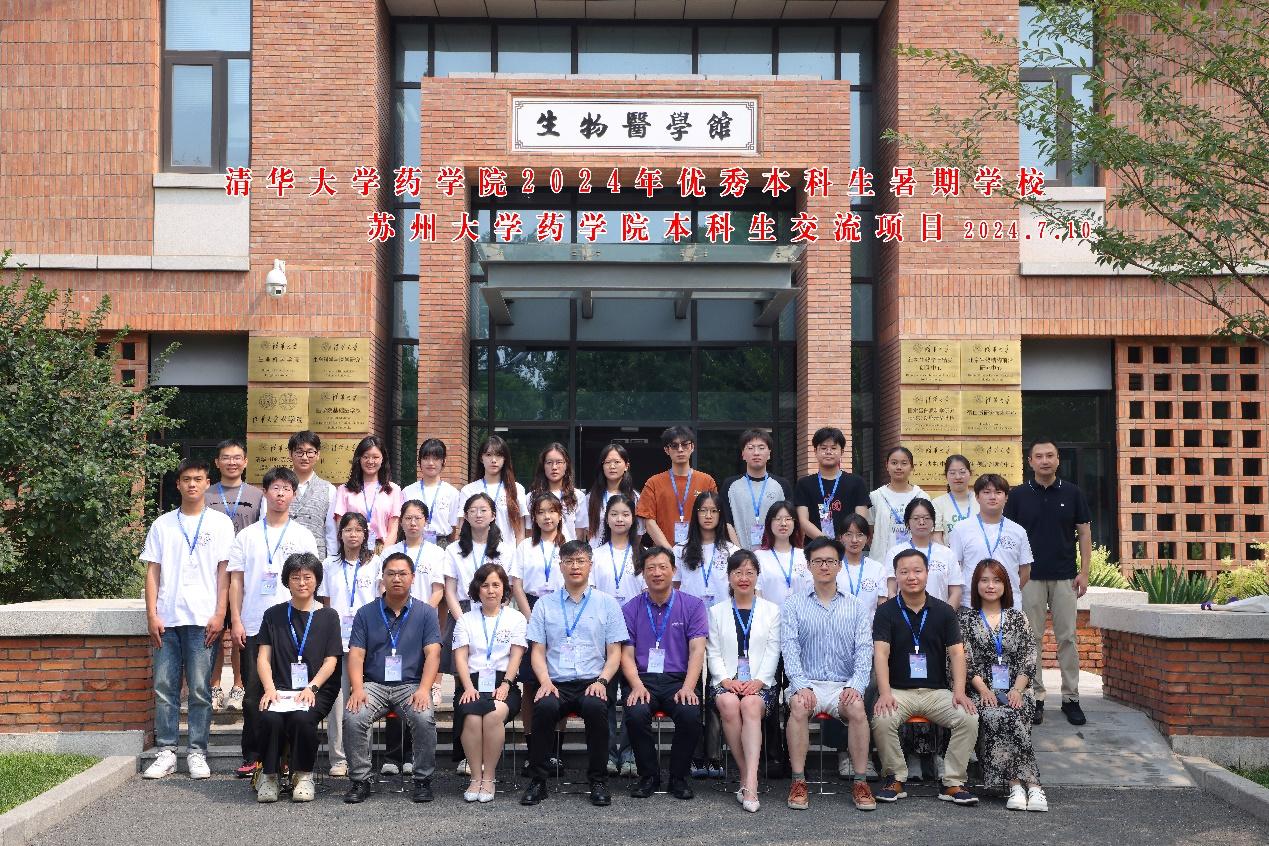 2024年7月10日-12日,清华大学药学院2024年优秀本科生暑期学校圆满落幕。本期活动中,苏州大学药学拔尖计划16位优秀本科生在苏州大学药学院黄小波副院长、刘艳丽教授、李佳斌副教授的带领下与我院师生欢聚清华园,从学术讲座、科研体验、参观交流、文化之旅四个模块感悟清华人文精神,体验清华科研氛围、提高学生学术造诣,增强药学人的使命感和责任感。本次活动是清华大学药学院与苏州大学药学院在人才培养层面合作的进一步探索,两院共同推动高质量药学人才培养新发展。