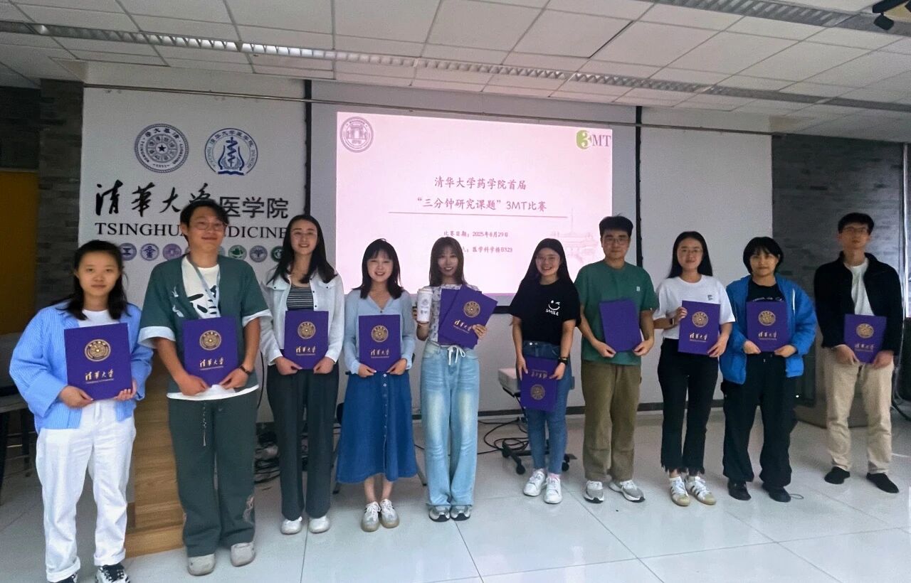 2025年8月29日,清华大学药学院在医学科学楼B323成功举办首届“三分钟研究课题”(3 Minute Thesis, 3MT)比赛!这是一场思维碰撞、智慧闪耀的盛会,来自不同领域的博士生们用最精炼的语言,将复杂的科学研究转化为生动易懂的故事,展现了科研工作的无限魅力与青年学子的学术风采。