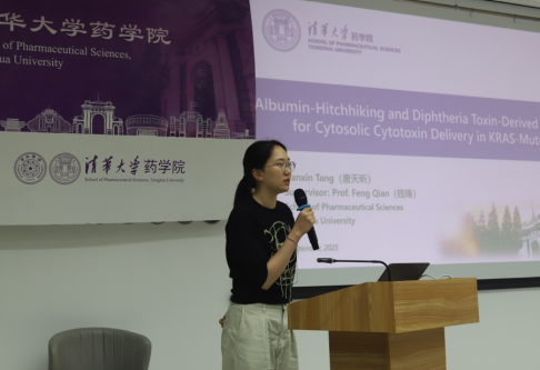 唐天昕同学汇报了搭白蛋白便车以及白喉毒素衍生的融合蛋白用于KRAS突变胰腺癌的胞质药物递送研究,该研究发现,该融合蛋白可利用白蛋白的肿瘤靶向作用、白喉毒素的内含体逃逸功能和毒性,实现KRAS选择性的细胞杀伤作用。