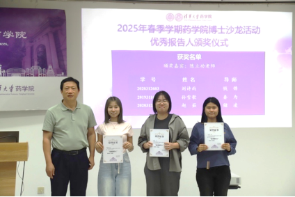 在第三期沙龙中途,学院举行了2025年春季学期优秀报告人颁奖仪式。药学院副院长陈立功老师为刘诗雨(导师:钱锋)、孙雪歌(导师:秦为)、赵茹(导师:储凌)三位同学颁奖,表彰她们在上学期学术活动中的出色表现。