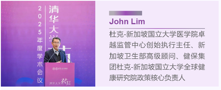 来自杜克-新加坡国立大学医学院卓越监管中心的John Lim教授从新加坡国情出发,介绍其卫生监管架构,包括三方核心主体及协作模式,分享基于创新药风险监管等具体举措,强调政企学协作的重要性,并表达了未来与中国相关机构的合作的愿景。