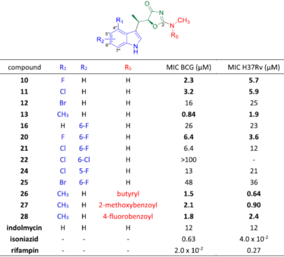 Table 1 Antimycobacterial activity of IND derivatives against M.bovis BCG and Mtb H37Rv