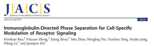 2025年9月12日,清华大学药学院杜娟娟团队与生命科学学院李丕龙团队在Journal of the American Chemical Society(JACS)上合作发表了题为“Immunoglobulin-Directed Phase Separation for Cell-Specific Modulation of Receptor Signaling”的研究论文。团队构建了一种免疫球蛋白引导的相分离系统(IgPS),利用抗体与多价肽段的相互作用在细胞膜上驱动特定受体形成凝聚体,从而实现受体的精准聚集与信号放大。在靶向CXCR4和DR5的应用中,IgPS能够特异性诱导CXCR4⁺/DR5⁺肿瘤细胞凋亡;在小鼠肿瘤模型中,该系统亦显著抑制肿瘤生长。该研究不仅借助相分离的独特生物物理特性,为膜受体的空间调控提供了全新工具,也为蛋白质药物的精准设计和肿瘤靶向治疗开辟了新路径,展示了相分离策略在生命科学与精准医学中的广阔应用前景。