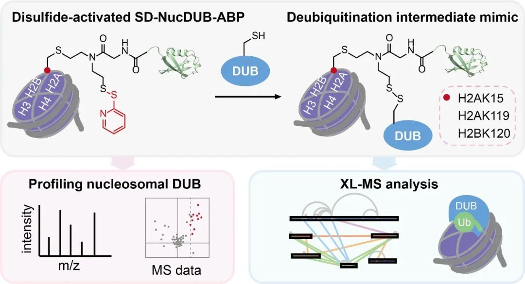 图1. SD-NucDUB-ABP捕获去泛素酶(DUBs)并应用于组学研究和XL-MS的示意图
