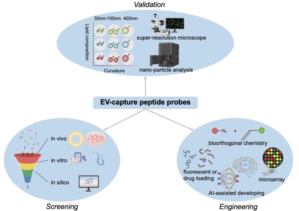 图2. 细胞外囊泡多肽探针的筛选、改造、验证策略