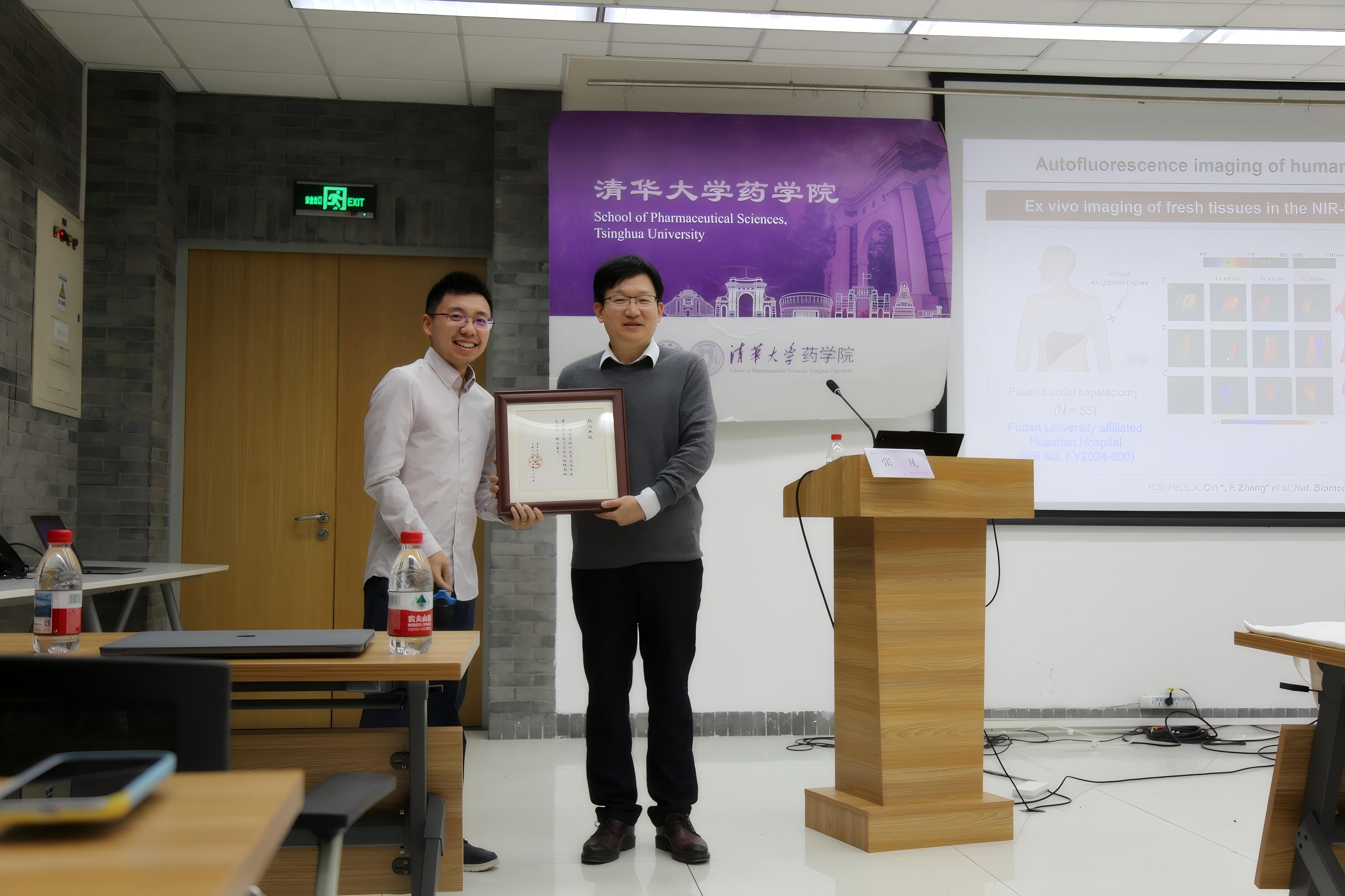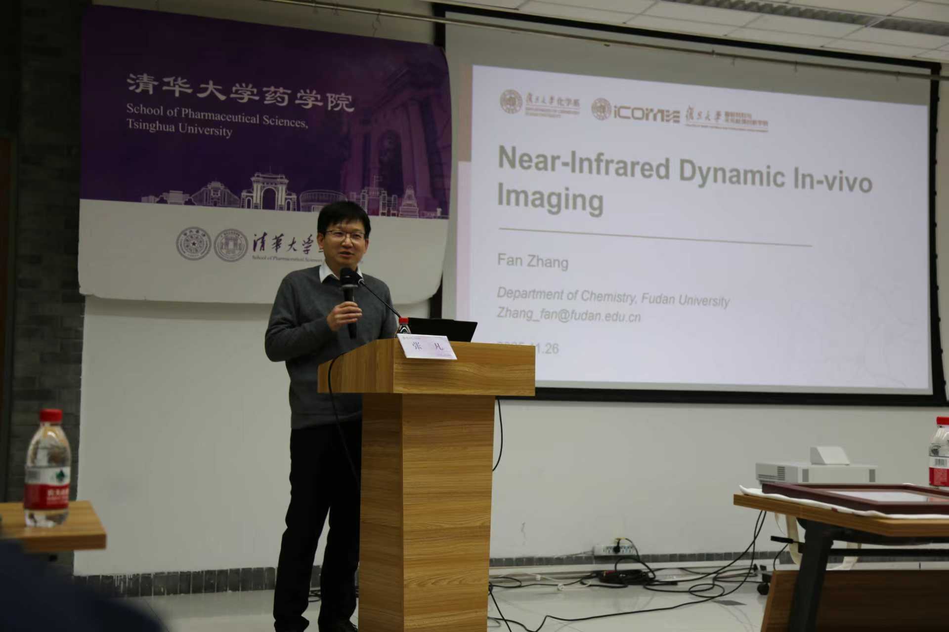 2025年11月26日,清华大学药学院药学前沿学术论坛第三十二期在医学科学楼B323会议室成功举办。本次论坛由储凌副教授主持,邀请到了复旦大学化学系教授、国家杰出青年科学基金获得者张凡教授作为本期嘉宾。张凡教授以“近红外第二窗口活体动态成像分析”为主题,系统介绍了其团队在活体荧光成像、近红外探针创新与活体可视化技术转化方面的最新进展与思考。