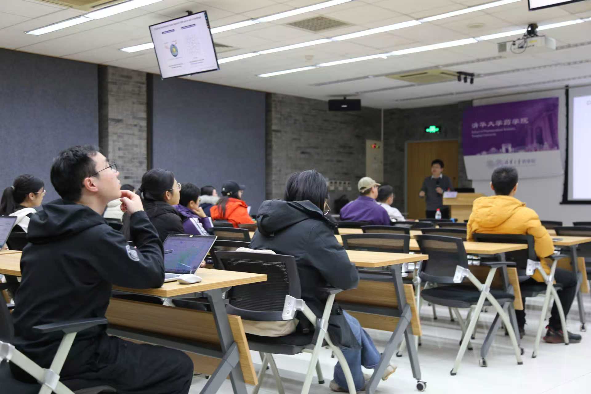 在问答交流环节,与会师生积极提问,并与张教授就AI在近红外分子设计中的可行性、近红外探针在真实临床场景中的应用价值、多通道深层成像的技术实现原理,以及label-free近红外信号的来源等议题展开了深入讨论。